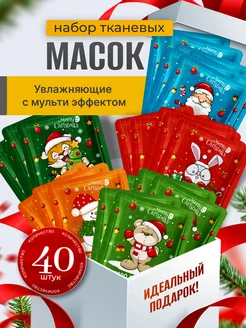 Новогодний набор тканевых масок для лица 40 шт