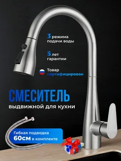 Смеситель для кухни хром с выдвижной лейкой