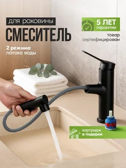 Смеситель для раковины в ванную кран с выдвижной лейкой