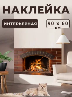 Наклейка для декора на стену "Кирпичный камин №1" 90х60 см