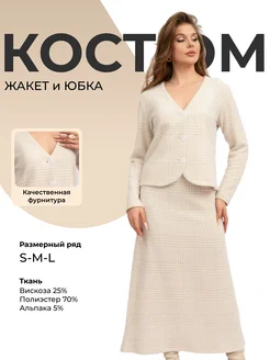 Костюм теплый с длинной юбкой и жакетом в клетку