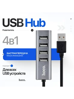 Hoco HB1 USB хаб 4 порта, 2.0, кабель 80 см