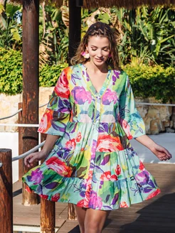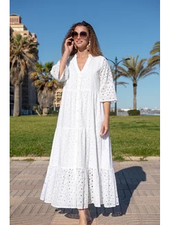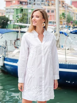 Туника-рубашка хлопковая шитье с длинным рукавом