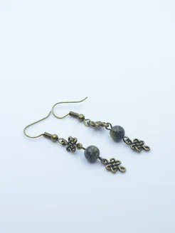 Серьги золотистые с фиолетовыми бусинами фосфосидерита