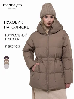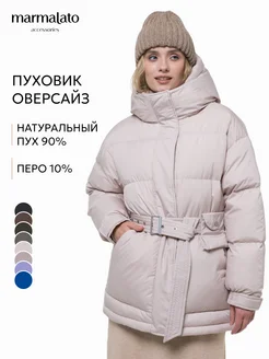 пуховик зимний длинный с капюшоном куртка с поясом оверсайз