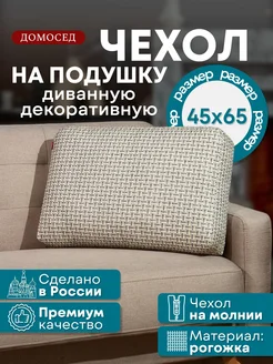 Чехол на диванную подушку на молнии из рогожки 65х45х12