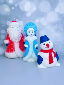Резиновые Снеговик Снегурочка Дед Мороз под елку комплект