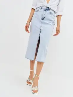 Юбка джинсовая миди с разрезом