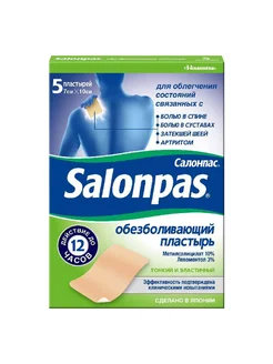 Салонпас, пластырь обезболивающий 6,5 х 4,2 см, 10 шт