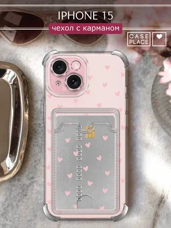 Чехол на iPhone 15 с карманом с сердечками