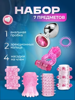 Эрекционное виброкольцо насадки на член для двоих 7в1