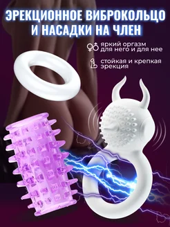 Эрекционное виброкольцо + насадка + кольцо на член 3 шт
