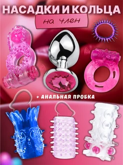 Эрекционные виброкольца 2 шт. насадки с анальной пробкой 7в1