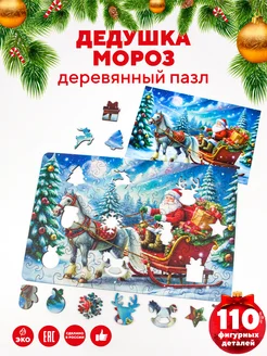 Новогодний деревянный пазл для детей Дедушка Мороз
