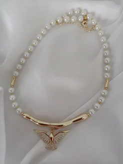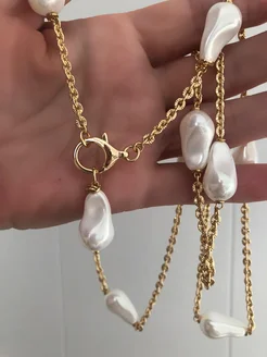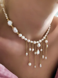 Длинное колье из Нат. камней и барочного жемчуга Майорка