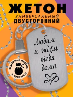 Брелок жетон с гравировкой Любим и ждем