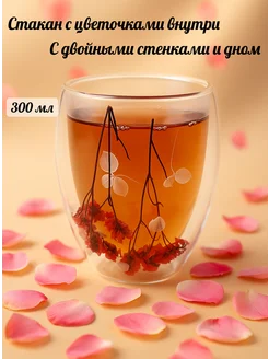 Стеклянный стакан с двойным дном и стенкой, с цветами