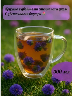Стеклянная кружка с двойными стенками и дном, с цветами