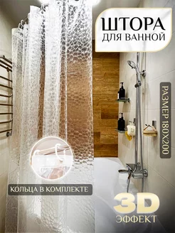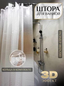 Штора для ванной комнаты прозрачная 3д эффект квадраты