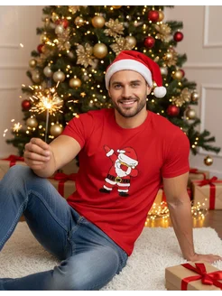 Футболка новогодняя с принтом семейная большие размеры