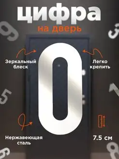Номер 0 на дверь квартиры самоклеящийся из нержавеющей стали