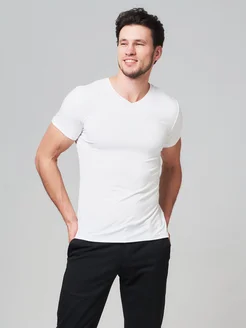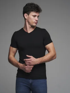 Футболка V-вырез однотонная облегающая