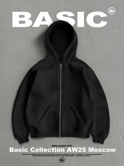 Удлиненное базовое оверсайз зип худи с начесом свага