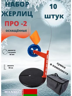Жерлицы для зимней рыбалки про-2 оснащ с сумкой (10 штук)