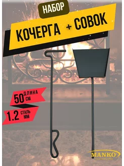 Совок и кочерга металл для печи зольный для золы
