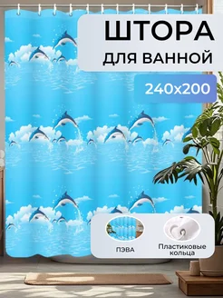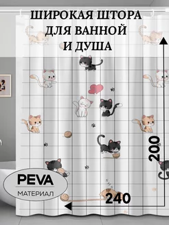 Широкая штора для ванной комнаты непрозрачная 240*200 peva