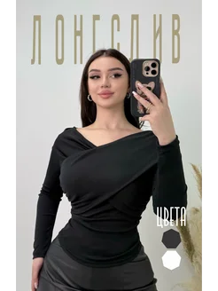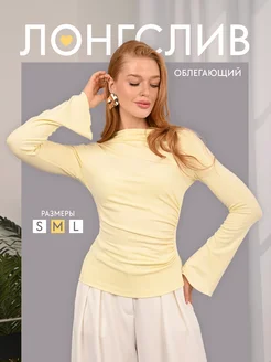 Лонгслив облегающий с длинным рукавом базовый укороченный