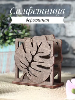 Деревянная салфетница на стол, лист монстера