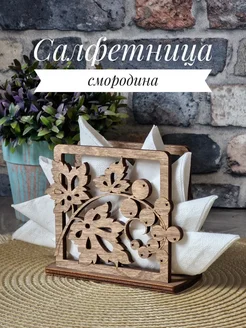 Деревянная салфетница на стол, ягоды смородины