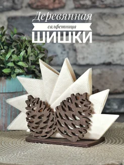 Деревянная салфетница на стол, сосновые шишки