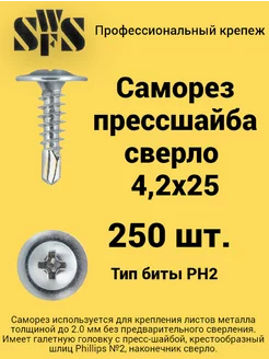 Саморез прессшайба сверло 4,2х25 (250 шт.)
