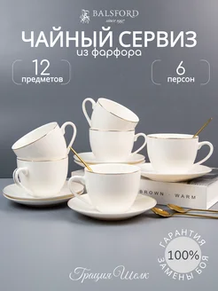Чайный сервиз на 6 персон фарфор чашки 230 мл и блюдца