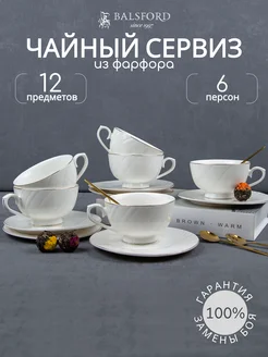 Чайный сервиз на 6 персон фарфор чашки 280 мл и блюдца
