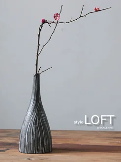 Ваза черная для сухоцветов интерьерная из гипса