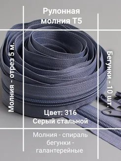 Молния рулонная 5 м. и 10 шт. галантерейных бегунков Т5