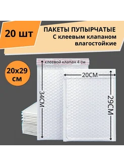 Пакет воздушно-пузырчатый с клеевым клапаном 20х29см, 20 шт