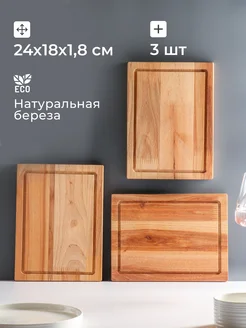 Доски разделочные деревянные, набор 4 предмета для кухни