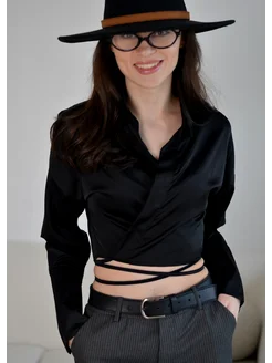 Блузка женская на запах с завязками с длинным рукавом