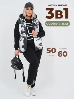 Спортивный костюм тройка утепленный на флисе с жилетом