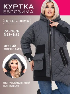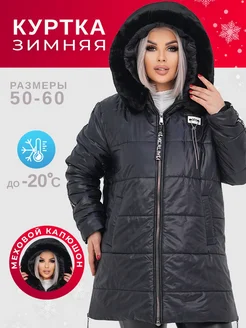 Куртка зимняя с капюшоном больших размеров оверсайз