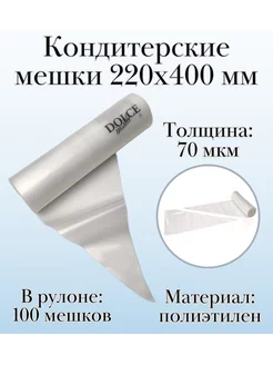 Кондитерские мешки 220х400 мм, 70 мкм, рулон 100 шт