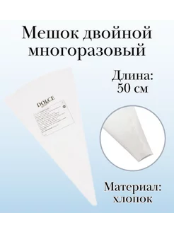 Мешок двойной кондитерский, многоразовый хлопковый L=50 см