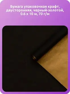 Бумага упаковочная крафт, двусторонняя, черный-золотой, 0.6…
