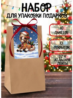 Новогодние подарочные крафт пакеты, упаковка для подарков