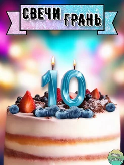 Свеча для торта синие грань 10 лет
