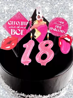 Свечи и топперы в торт розовые с блесками 18 лет